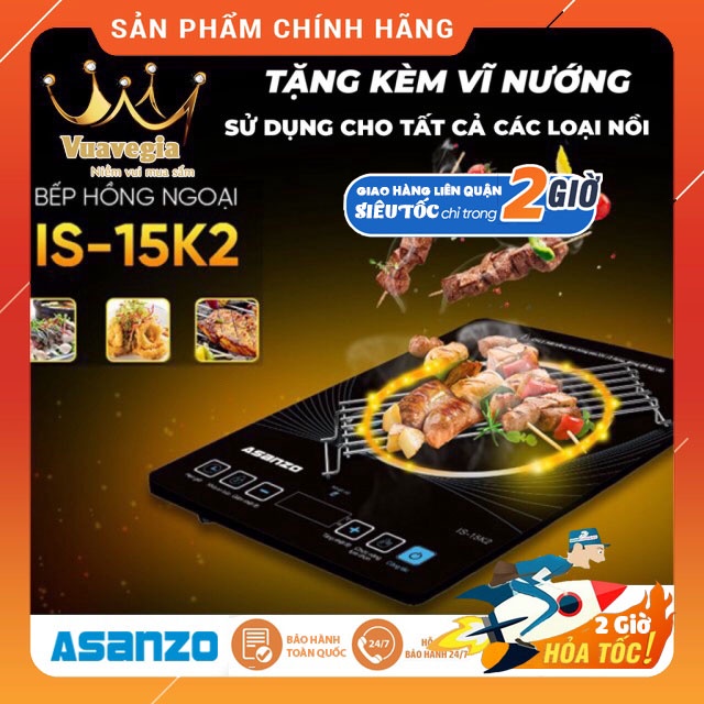 Bếp điện hồng ngoại cảm ứng, mặt kính cường lực cao cấp Asanzo IS-15K2 - HÀNG CHÍNH HÃNG