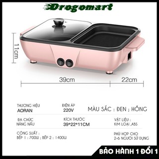 Bếp lẩu nướng 2in1 đang năng, Chống dính cao cấp,Thiết kế kiểu dáng Hàn Quốc nhỏ gọn tiện lợi