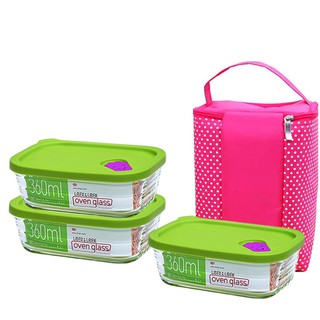 Bộ 3 hộp thủy tinh Lock&Lock nắp silicon tặng túi giữ nhiệt