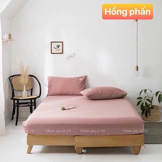 3.Bộ ga nệm 1m4 x 2m và 1m6 x 2m cotton citi gồm 1ga nệm + 2vỏ gối nằm kích thước 50 x 70cm, có các tone màu: hồng phấn, kem be, xám nhạt, xanh mint,xanh dương nhạt bo chun xung quanh trùm kín mặt và các cạnh nệm vô cùng sạch sẽ