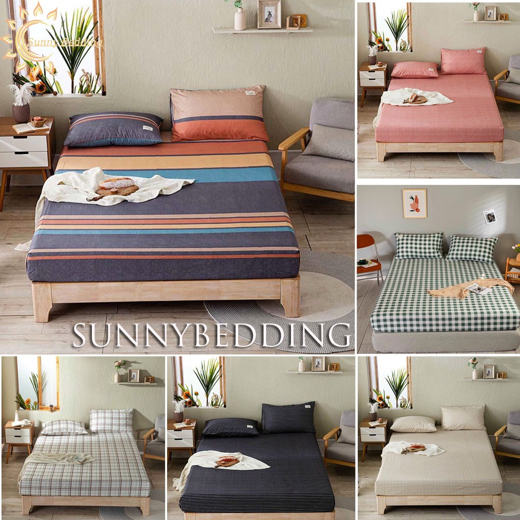 💗 bộ ga giường 💗ga gối 💗 cotton tc mẫu kẻ SUNNYBEDDING miẽn phí bo chun