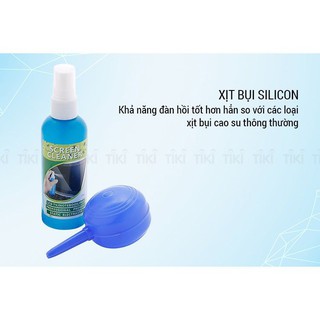 Xịt bụi silicone cho lực thổi cực mạnh. Khả năng đàn hồi tốt hơn hẳn so với các loại xịt bụi cao su thông thường. Xịt bụi màu xanh dương rất đẹp, được thiết kế dạng booster, hút khí từ phía sau đẩy lên đầu thổi, giúp tránh tình trạng đẩy bụi ngược trở vào thiết bị.