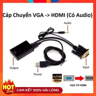 Cáp chuyển VGA to HDMI FULL HD có audio âm thanh 3.5-Đầu chuyển đổi tin hiệu Vga sang Hdmi có âm thanh audio