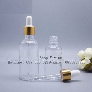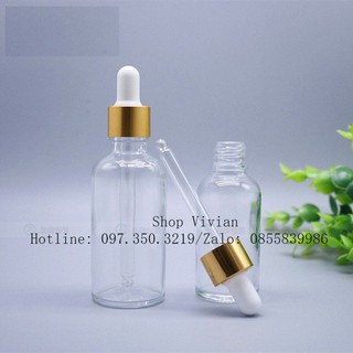 Chai lọ đựng tinh dầu, serum 50ml, lọ thuỷ tinh trong suốt nắp bóp nhôm vàng *** HÀNG CÓ SẴN