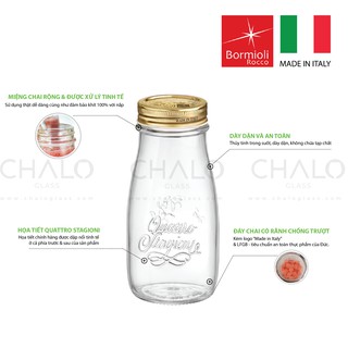 Phần thân hũ cách điệu với logo Quattro Stagioni in nổi đẹp mắt, đồng thời giúp chống trơn trượt và tăng thêm nét tinh tế của chất liệu thủy tinh.
