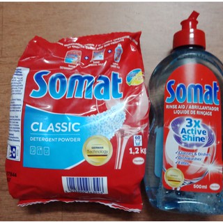 Combo bột rửa bát somat 1,2 kg nuớc làm bóng Somat 500ml và hộp muối somat 1.2 kg