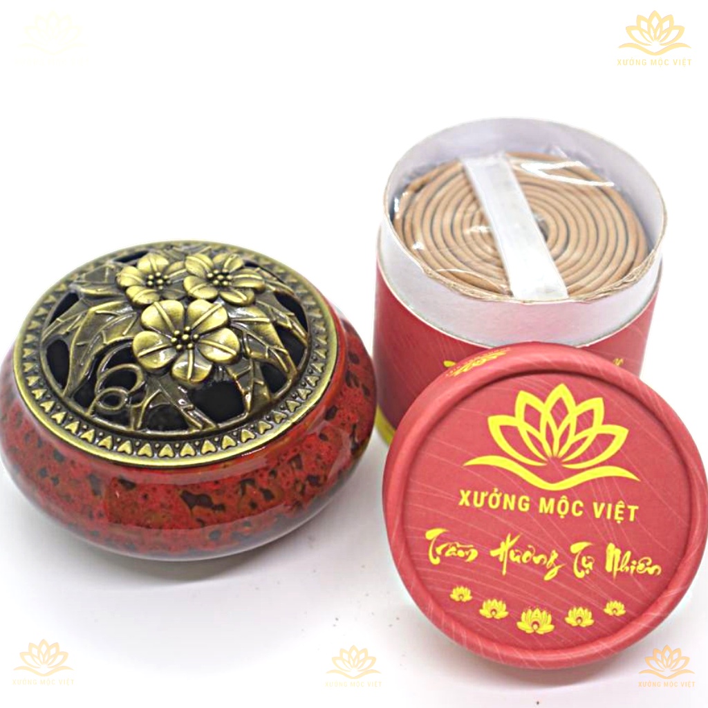 COMBO Hộp Nhang Khoanh Trầm Hương Tự Nhiên Xưởng Mộc Việt, Mỗi Khoanh Cháy 4 Giờ + Lư Sứ Xông Trầm