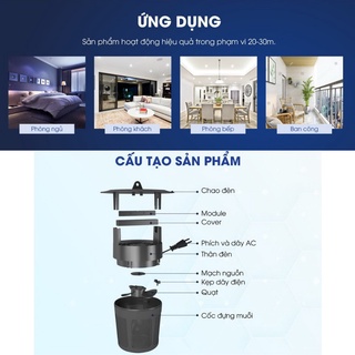 - Muỗi khi bị hút vào ngăn đựng tự chết trong 48 giờ, không gây tiếng nổ, không tạo mùi khét.