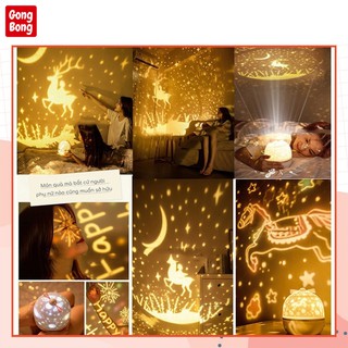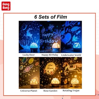 Đèn chiếu sao xoay tự động tặng kèm 6 mẫu film decor chiếu trần 3D quà tặng sinh nhật,