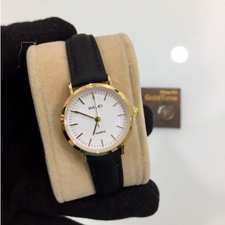 Đồng hồ Halei nữ dây da mặt tròn chống nước + tặng pin dự phòng