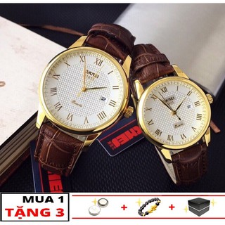 Đồng Hồ Nam Nữ SKMEI Viền Vàng Dây Da sang trọng TẶNG kèm HỘP + PIN + vòng Tỳ Hưu