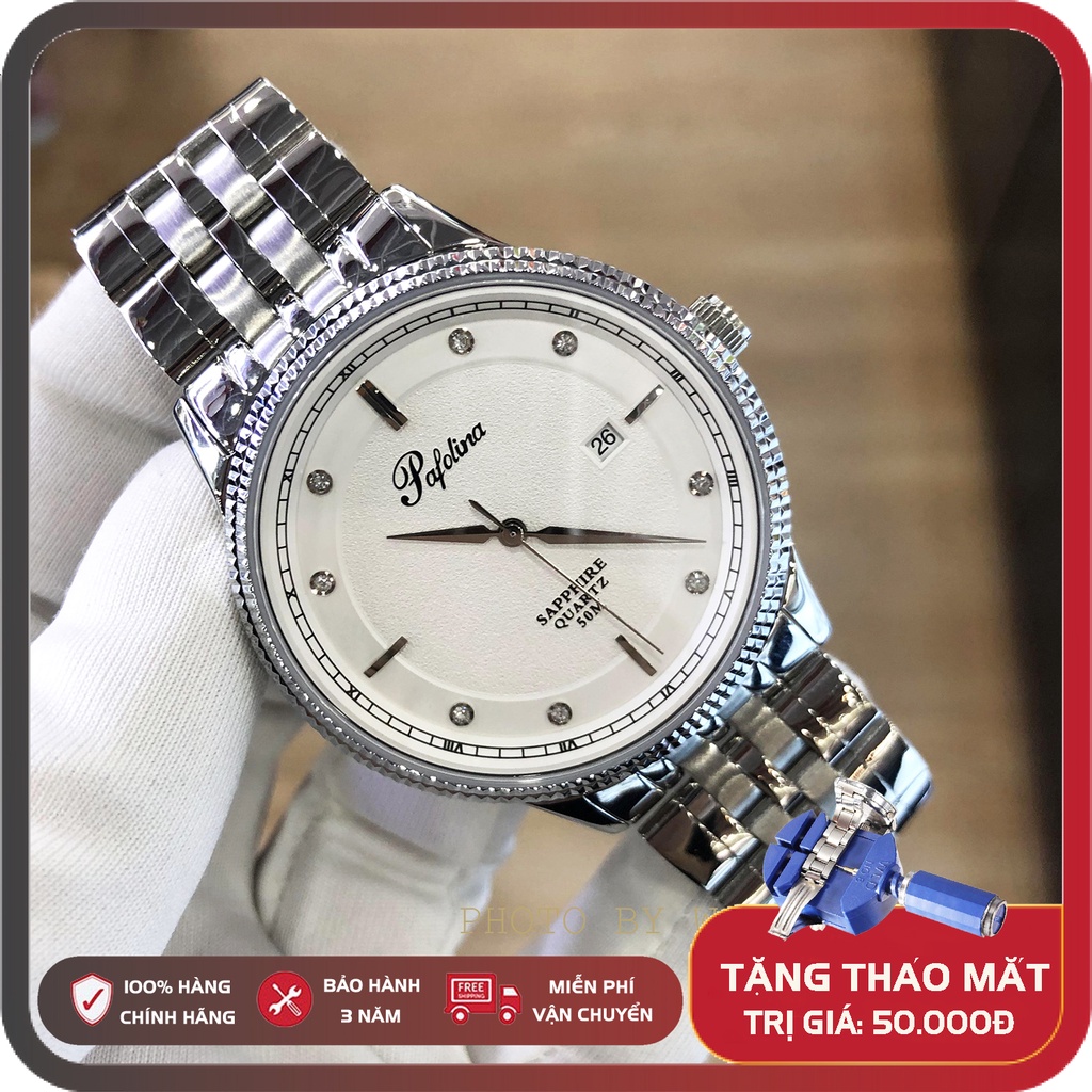 Đồng hồ pin, đồng hồ nam dây thép Pafolina 5026M full box, kính sapphire chống xước, chống nước