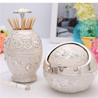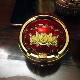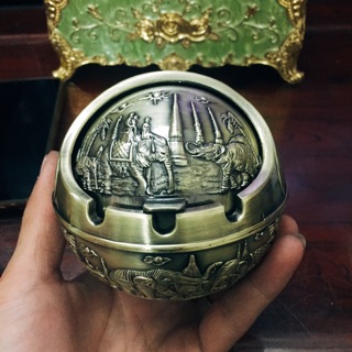 ✨Gạt tàn làm bằng kim loại chạm khắc hoa văn , tráng men tinh xảo . Gạt tàn hoàng gia này cùng bộ với hộp giấy ăn và ống tăm trang trí .