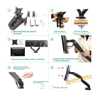 Giá Treo 2 Màn Hình NB-F160 Hỗ Trợ Màn 17 -30 Inch / Tải Trọng 9Kg 1 Tay - Lắp Đặt Kẹp Bàn & Vít Xuyên Bàn - Model 2022