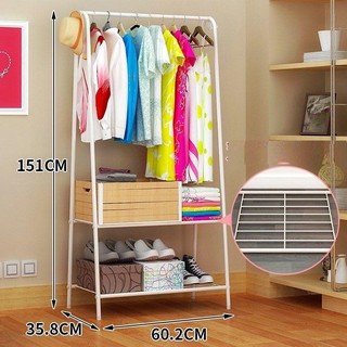 Gía treo quần áo thiết kế thêm 1 tầng có các thanh sắt ngang để đồ, ngoài việc treo quần áo còn có thể để được rất nhiều vật dụng lên tầng dưới của kệ áo như : Giày dép, túi sách, ba lô...