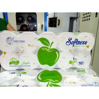 Giấy vệ sinh táo INDO 10 cuộn x 3 lớp - Giấy cuộn nhỏ có lõi và không lõi cao cấp mịn dai chính hãng - GV005