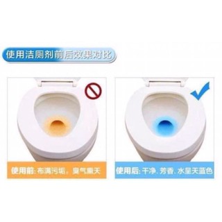 Công dụng : Tự động tẩy sạch bồn toilet, khử mùi hôi, lưu lại mùi hương dễ chịu sau khi xả nước, khi hòa tan vào nước có màu xanh mát, diệt khuẩn nguy hại bằng công nghệ sinh học tiên tiến chống bắm cặn dính vào bồn cầu và không cần dùng tay cọ rửa