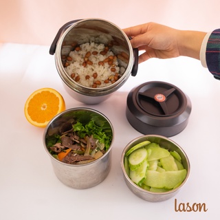 Hộp cơm giữ nhiệt 3 tầng 2 khay LASON, cà men đựng cơm, cặp lồng ủ nóng 6-8 tiếng