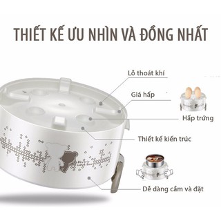 Hộp cơm điện BEAR 3 ngăn inox 304 cao cấp hút chân không cực chặt và khít trắng bầu