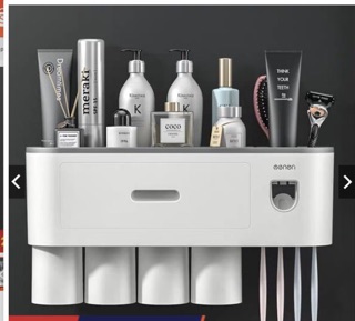 Kệ để đồ nhà tắm đa năng thông minh OENON kèm cốc hút từ tính có nhả kem đánh răng tự động dán tường -Cô Gái Đông Bắc