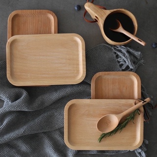 Khay đĩa gỗ decor trang trí đựng đồ ăn dặm bánh pudding flan cho bé hình chữ nhật, vuông, tròn