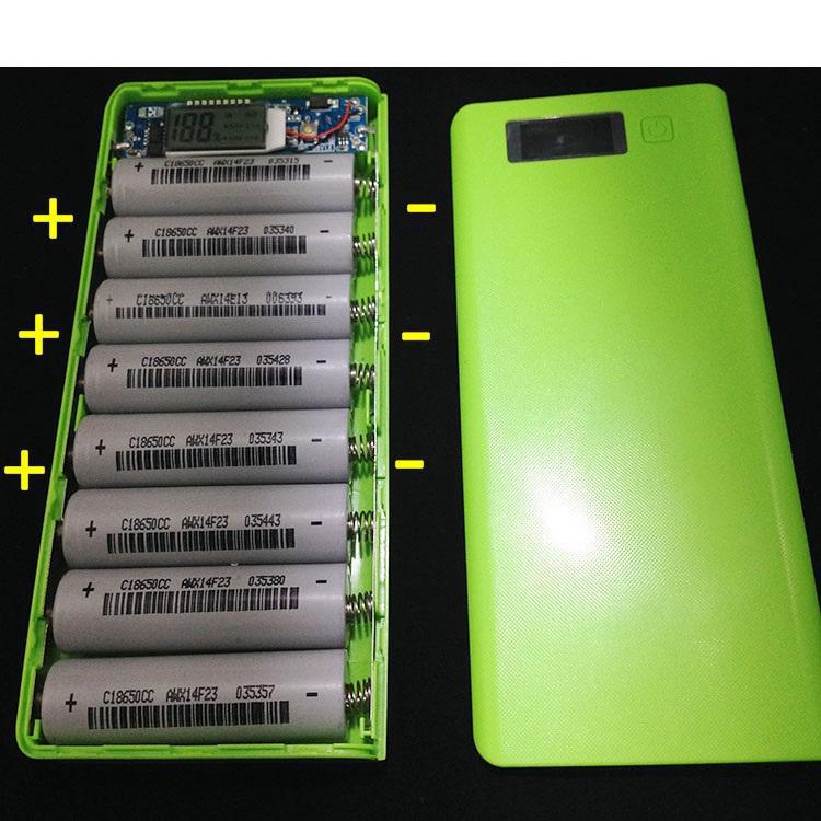 * - Khung 8 pin 18650 dung lượng có thể lên đến 30.000mAh (sản phẩm không bao gồm pin) * - Báo điện áp và dòng điện vào hoặc ra * - Sạc nhanh với 2 cổng vào microUSB * - Có 2 ngõ ra: 1A và 2A giúp sạc 2 thiết bị cùng lúc * - Chức năng đèn pin với 2 LED siêu sáng cực kỳ tiện lợi (nhấn 2 lần nút nguồn để mớ hoặc tắt đèn pin) * - Không cần hàn nối pin với nhau, chỉ cần lắp pin vào là chạy (Luu ý: một số khung trên thị trường yêu cầu phải hàn) * - Thay pin pin dễ dàng và nhanh chóng * - Hiện thị % pin qua màn hình LCD