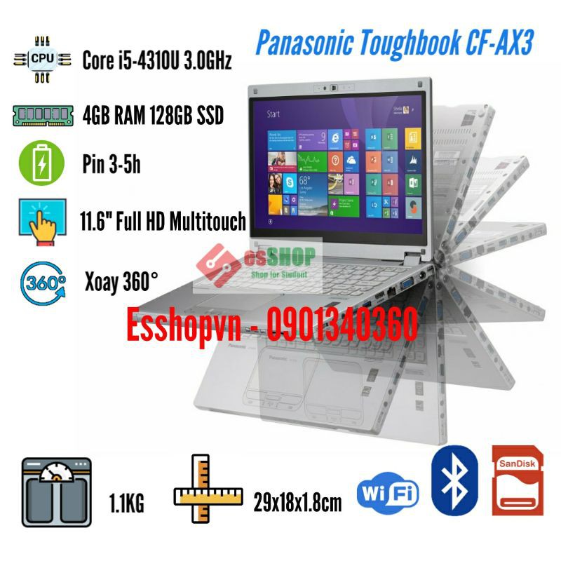 Laptop Panasonic CF-AX3 màn hình cảm ứng 11.6 inch Full HD xoay 360 độ 4GB RAM 128GB SSD Core i5-4200U - Likenew 98%