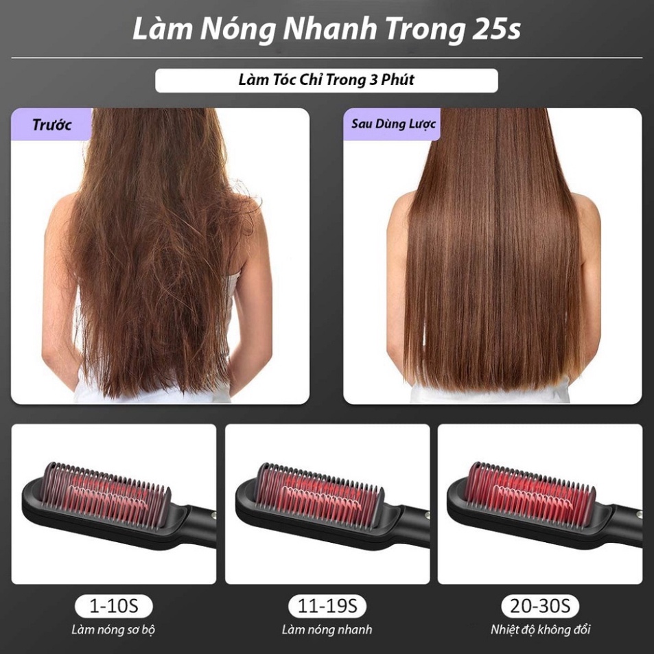 ️ Lược điện chải thẳng tóc, Uốn xoăn, là thẳng, tạo kiểu tóc chuyên nghiệp chỉ trong 3 phút, tiết kiệm thời gian làm đẹp tóc