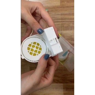 - Xoay nắp lọ tinh dầu đuổi muỗi ra, lắp lọ dung dịch này vào trong thân máy rồi cắm vào ổ điện và bật công tắc lên.