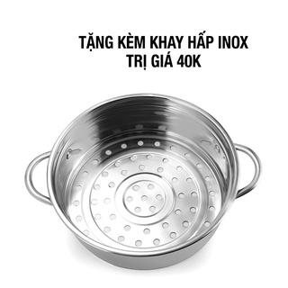 Nồi Lẩu Điện Đa Năng Kèm Giá Hấp Có Tay Cầm Tiện Dụng 18cm, Nồi Lẩu Mini 2 Tầng Cao Cấp + Tặng khăn lau