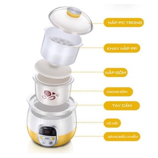 Nồi nấu cháo Bear 0.8l có lồng hấp BH 18 tháng