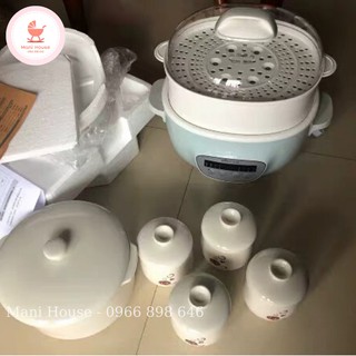 Nồi nấu cháo chậm ăn dặm cho bé và gia đình Bear 2,5L kèm 4 thố nhỏ và lồng hấp