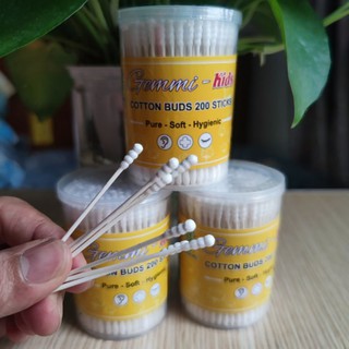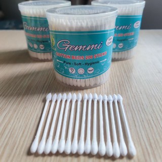 Tăm bông y tế trẻ em, người lớn GEMMI thân gỗ ( lọ 200 cây) đầu bông xoắn và nhọn, an toàn, thân thiện môi trường