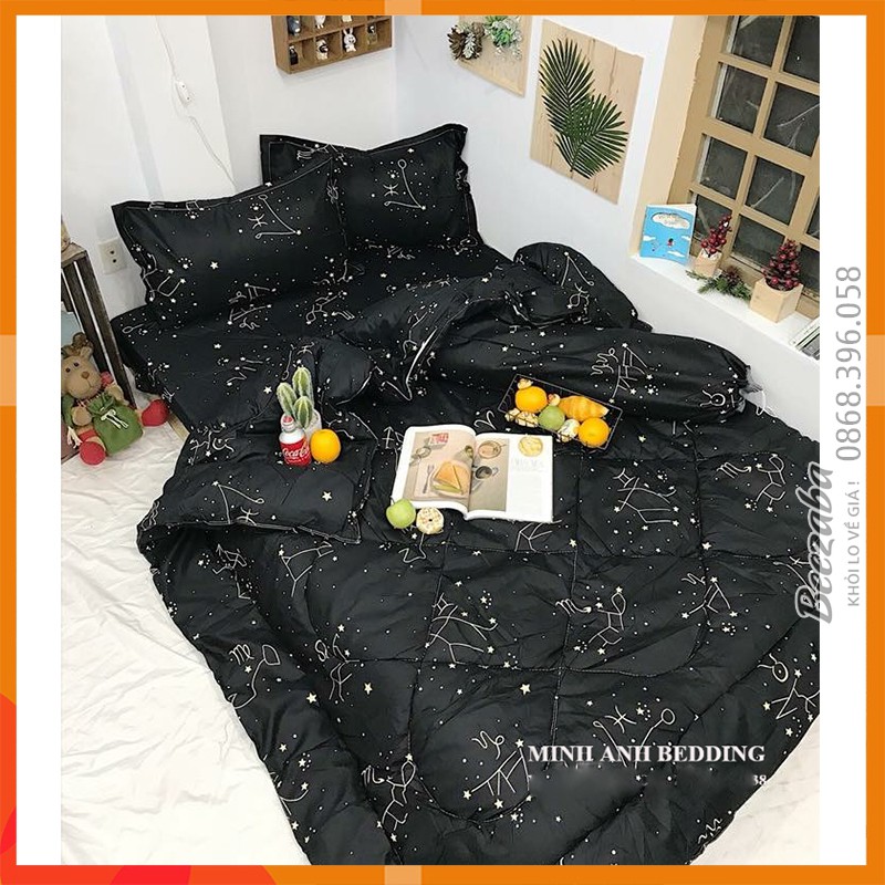 Trọn Bộ 5 món chăn phao Ga Gối poly cotton [Loại Đẹp] [ Chăn phao + Bộ ga gối + Vỏ gối ôm ]