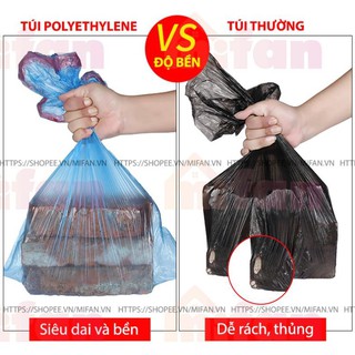 LƯU Ý: TÚI LÀM TỪ CHẤT LIỆU CÓ THỂ PHÂN HUỶ ĐƯỢC NÊN KHÔNG DÀY VÀ CỨNG NHƯ CÁC LOẠI TÚI RÁC NYLON KHÁC NHƯNG RẤT DAI VÀ BỀN.