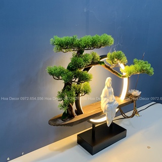 ☘ Tượng Phật Quan Âm được làm từ sứ trắng cao cấp, khung tròn led là hợp kim sơn cách điện, thân cây là gỗ và lá cây là nhựa xanh.