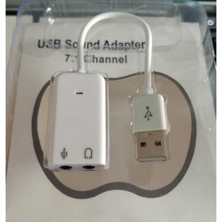 - USB Sound 7.1 Apple có thể sữ dụng cho máy tính bàn hoặc laptop .Chỉ cần cắm đầu USB vào máy là có thể thưởng thức ngay những giai điệu tuyệt vời.Sound card USB chia thành 2 zắc cắm cho bạn tiện lợi hơn khi sử dụng headphone trò chuyện,online với người thân ,bạn bè
