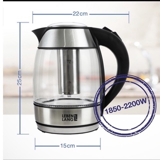 Ấm siêu tốc thủy tinh Lebenlang 1.8l – Hàng tiêu chuẩn Đức