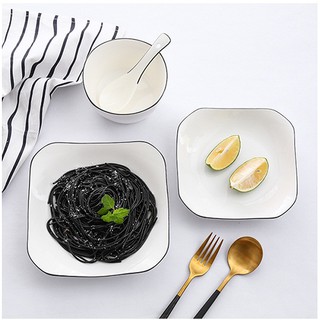 - Kiểu dáng: Dòng bát đĩa trắng viền đen là dòng SP tiêu biểu bán chạy nhất nhà Iko. Shop cung cấp đầy đủ các kiểu dáng, form bát, form đĩa vuông tròn khác nhau để khách lựa chọn. Khách hàng hãy vào mục "tất cả Sản phẩm" của Shop và search chữ "trắng viền đen" để tìm các SP SET BỘ thiết kế sẵn hoặc MUA LẺ: bát con, bát tô, đĩa tròn, vuông, dài, âu sứ khác nhau của bên mình bổ sung thành 1 bộ đầy đủ.