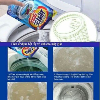 - Bột vệ sinh lồng máy giặt Hàn Quốc giúp loại bỏ những cặn lắng caxi và chất bẩn cáu cặn, diệt khuẩn gây mùi hôi trong máy giặt và đường ống thoát nứớc.