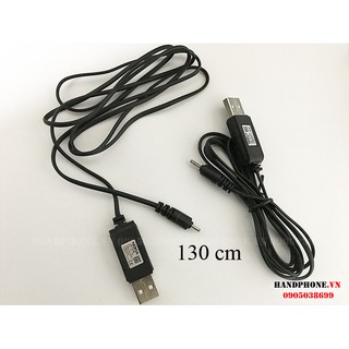 Cáp sạc USB chân kim DC2.0 có đầu cắm vào dạng cổng USB và đầu ra theo chuẩn chân kim có đường kính 2mm dùng cho các loại máy Nokia ngoài ra có tương thích với các dòng máy khác sản xuất tại China có cùng chuẩn cắm. ví dụ như máy Kechaoda K8, Avio Flybee G11 ...