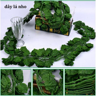 Riêng Dây Lá Nho Đỏ Chiều dài 1 dây là 2,2m đến 2,4m. Mỗi dây gồm 20 lá. Mỗi lá to 6-7 cm.