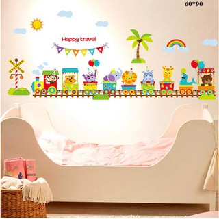 Decal bộ kết hợp thú ôm nhau và Happy travel size ( 60x90cm)