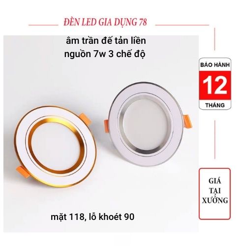 Đèn led âm trần tản nhiệt 7W liền thể chuẩn đổi màu viền vàng/bạc 3 ánh sáng dùng âm trần thạch cao thiết kế tinh tế gọn đẹp mắt, dễ dàng lắp đặt thi công, 3 chế độ ánh sáng cho quý khách lựa chọn chỉ cần 1 công tắc, tắt mở lại đèn sẽ tự đổi màu từ ánh sáng trắng sang vàng, tắt mở lại sẽ chuyển sang màu trung tính trắng ấm rất đẹp và rất sang trọng.