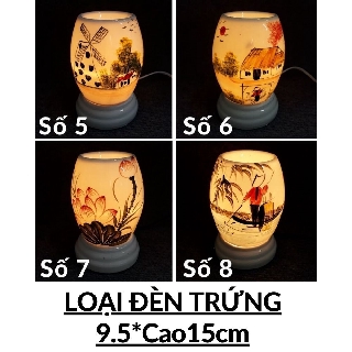 -Chất liệu: Sứ thấu quang là loại mỏng, đẹp cho ánh sáng xuyên qua; Có chỉnh ánh sáng Mạnh - Yếu; Họa tiết: Vẽ tay hoàn toàn.
