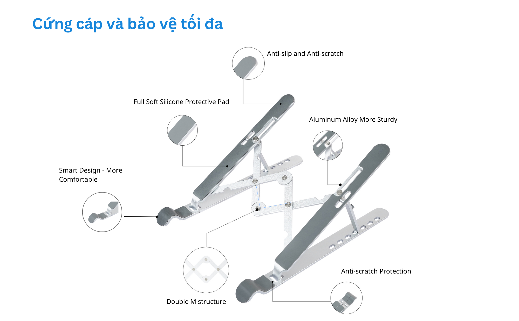 - Chất liệu hợp kim nhôm cao cấp chắc chắn bền bỉ, đệm cao su chống trơn trượt.