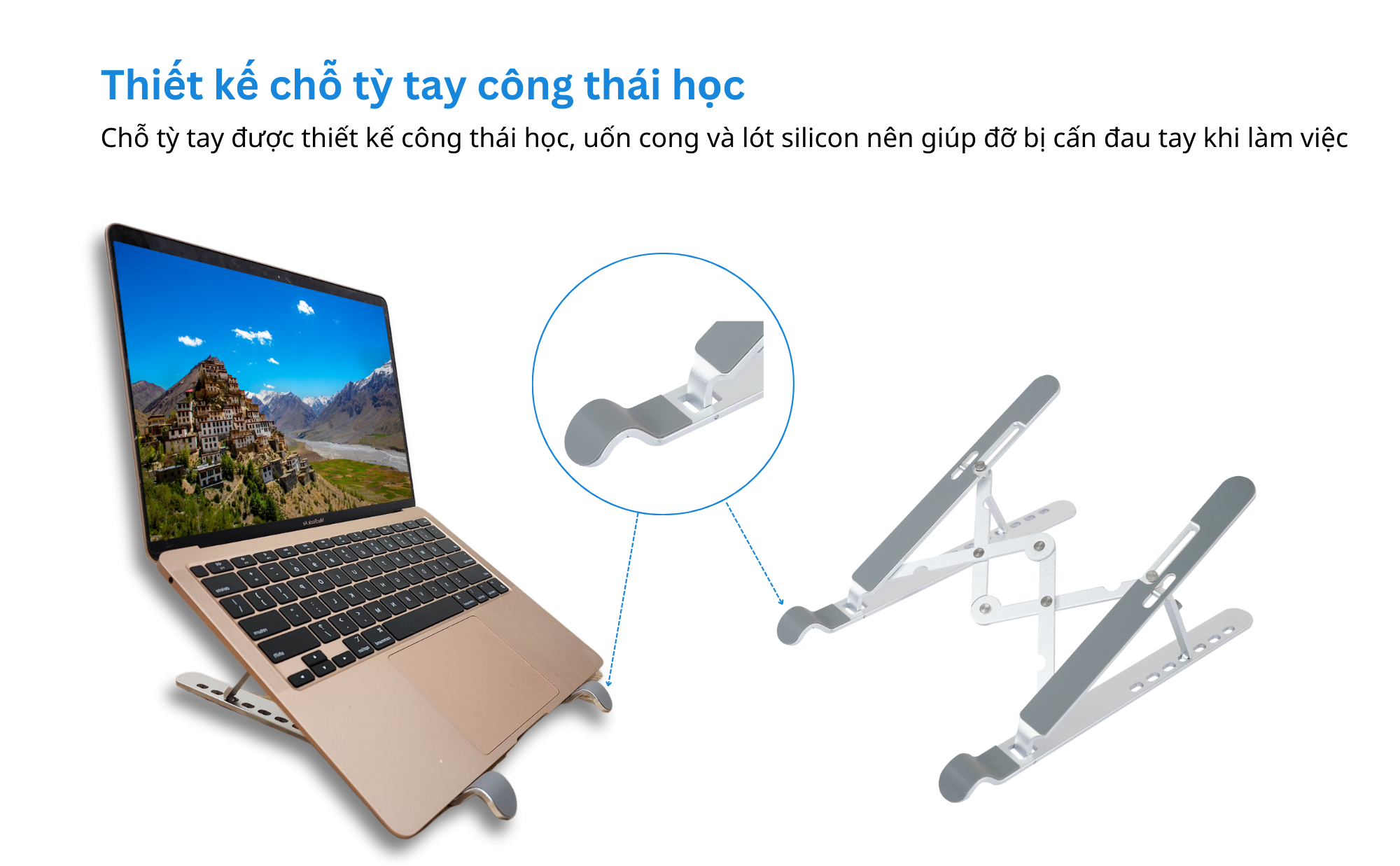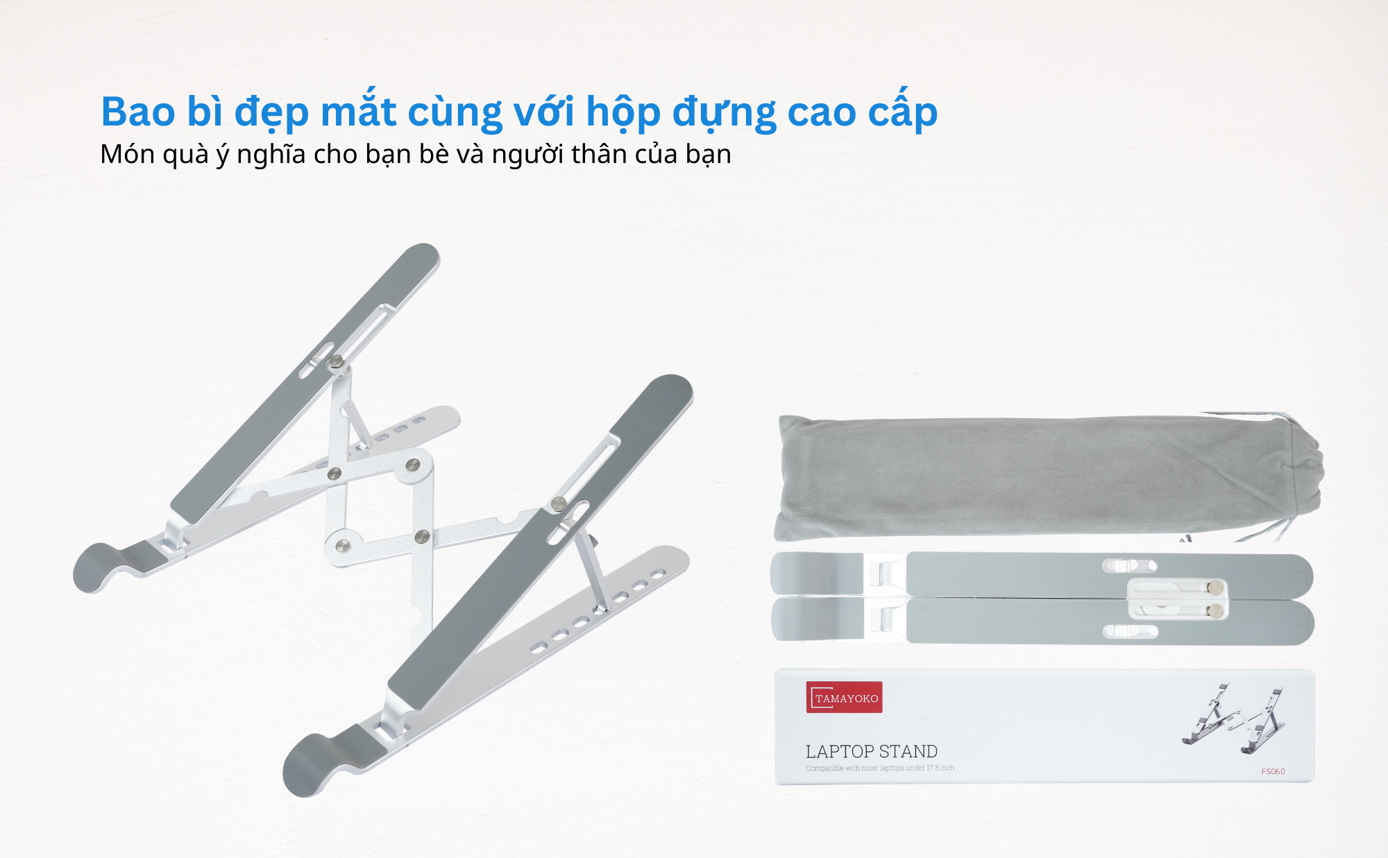 Giá Đỡ Laptop Hợp Kim Nhôm Cao Cấp Dễ Dàng Gấp Gọn, Giúp Tản Nhiệt Laptop, Máy Tính Xách Tay - 07 Nấc Điều Chỉnh Góc Độ. Hàng Chính Hãng Tamayoko