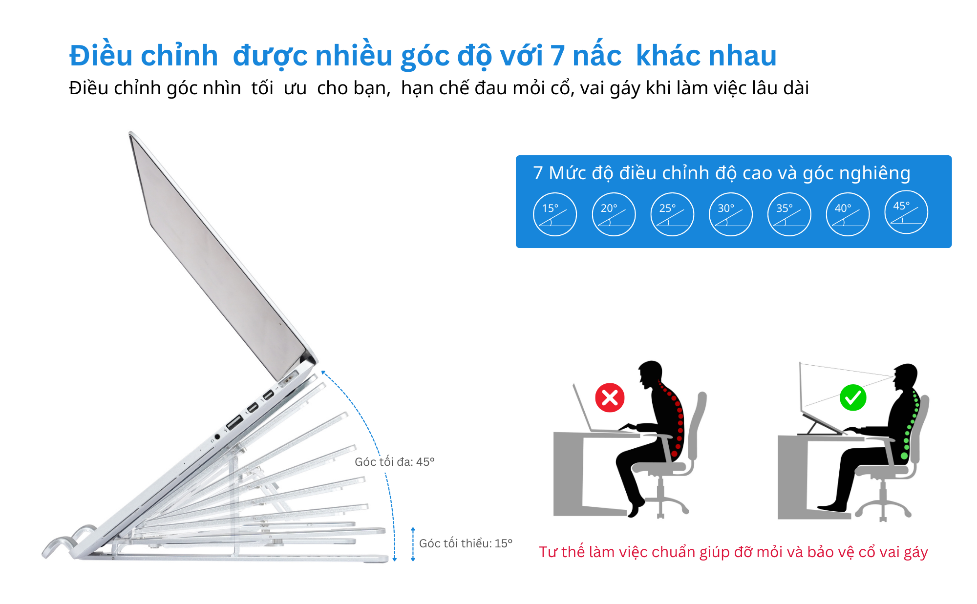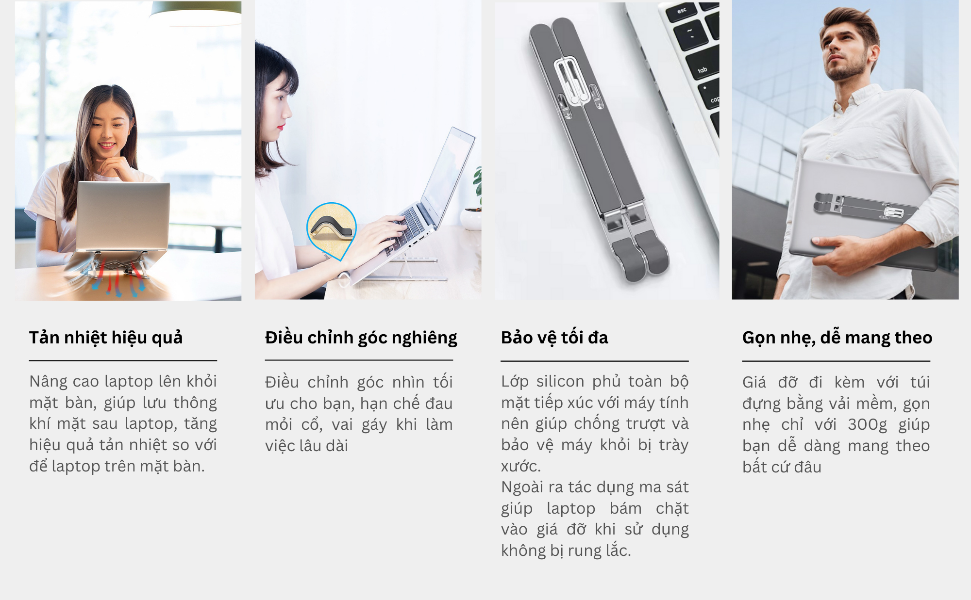 - Dùng để đỡ laptop các cỡ (10~17.3inch) và máy tính bảng