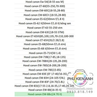 Hood loa che nắng canon đủ loại cho ống kính canon