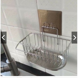 Kệ inox có khay hứng nước để miếng rửa bát kèm giỏ đựng , dán tường siêu chắc